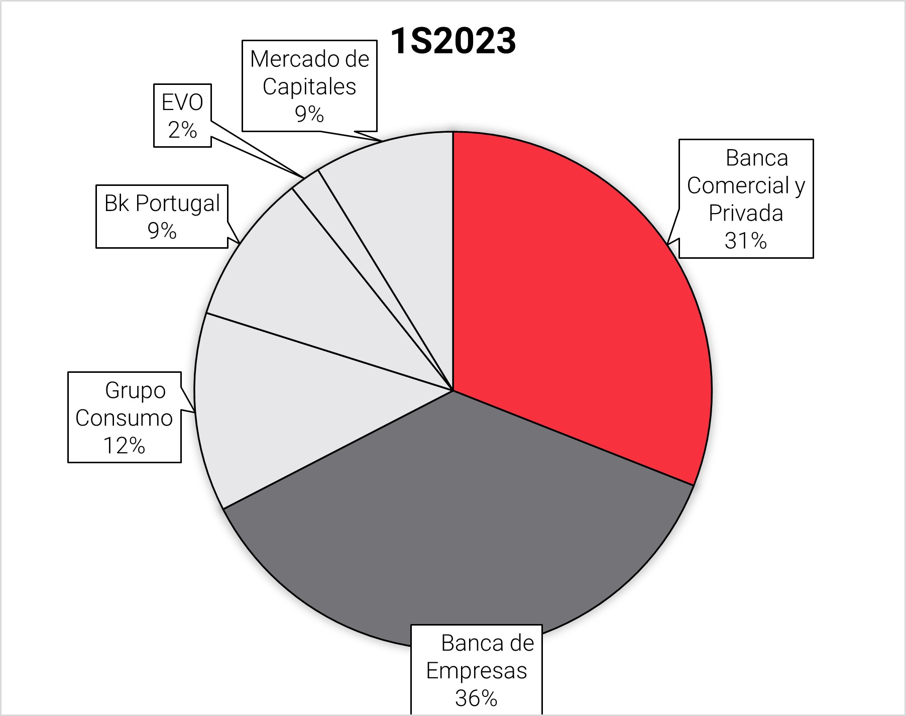 Evo Banco: Banco perteneciente al grupo que únicamente opera de manera digital. Cuenta con una inversión crediticia de 3.200 millones de euros.