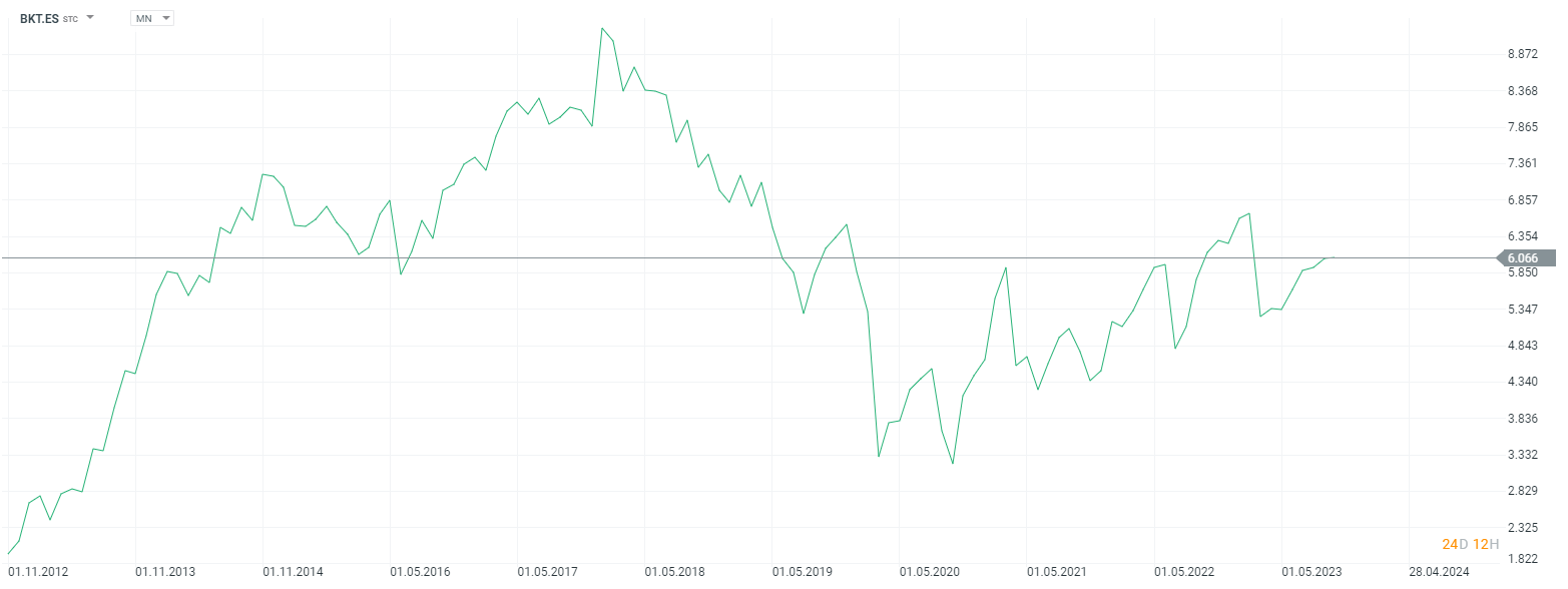 Bankinter (BKT.ES) es uno de los principales bancos en España tanto por capitalización bursátil (unos 5.450 millones de euros) como por volumen de activos. Constituido en 1965 como un banco industrial, al 50% entre el Banco Santander y el Bank of America. En 1972 salió a cotizar y se convirtió en un banco independiente, transformándose además en un banco comercial.