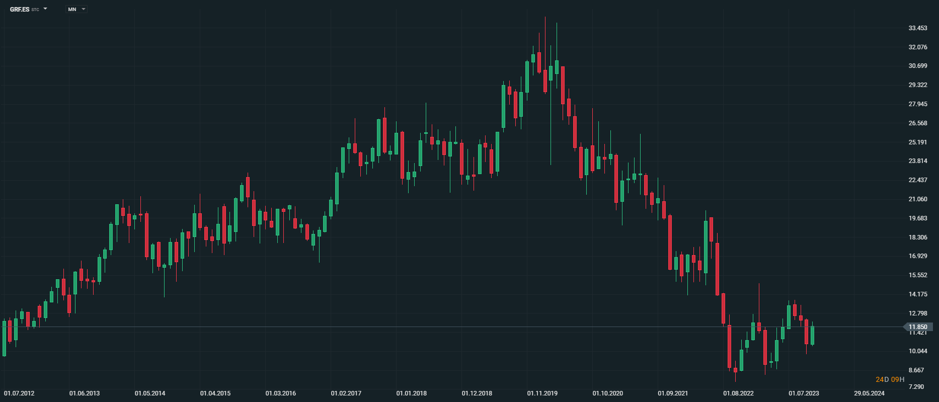 Las acciones de la compañía acumulan una caída del -64% desde sus máximos de febrero de 2020 y en los últimos 5 años han caído más de un -15% de media al año. En este 2023 suben un 5% y deja a la compañía con una capitalización de mercado de 7.300 millones de euros.