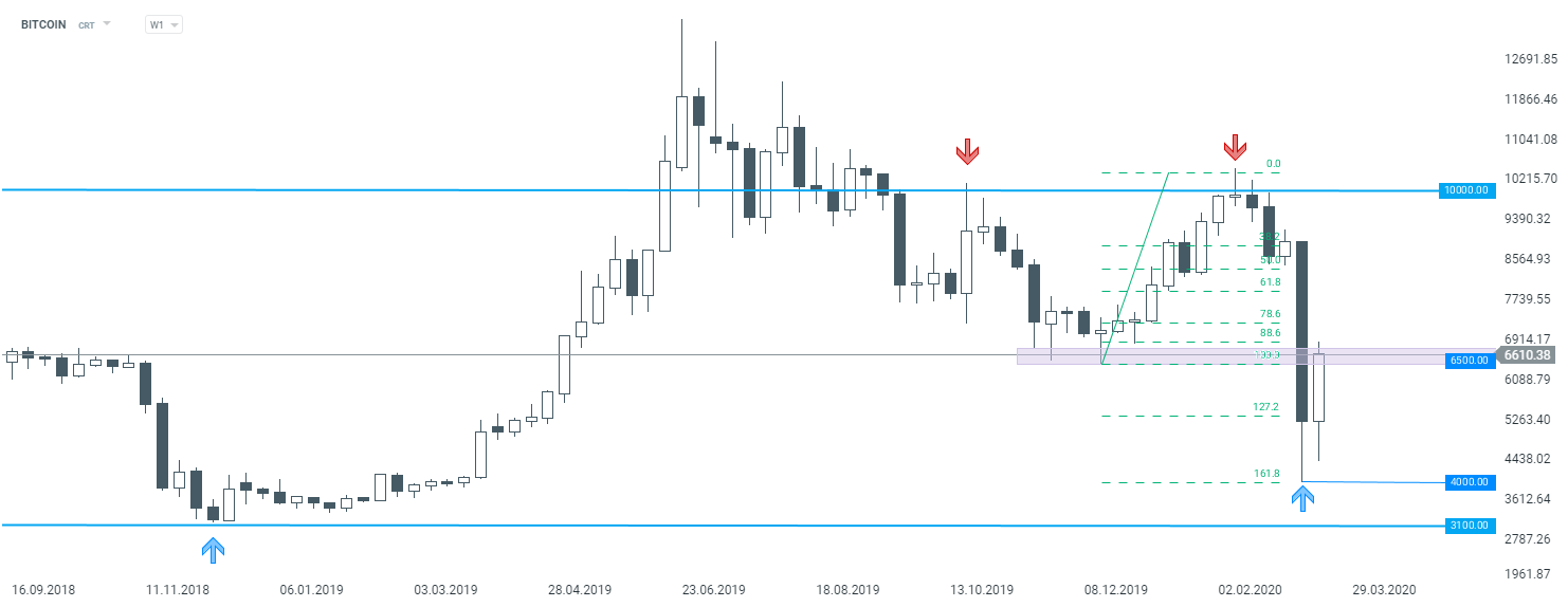 Algunos inversores consideran las criptomonedas como activos seguros en un momento en que prevalece el pánico en los mercados tradicionales. Sin embargo, como puede ver en el comportamiento reciente del mercado, esta teoría resulta estar equivocada. Los fuertes descensos en los mercados bursátiles mundiales también se acompañaron de una venta masiva de todas las criptomonedas. Echemos un vistazo más de cerca a la situación técnica en Bitcoin y Litecoin.