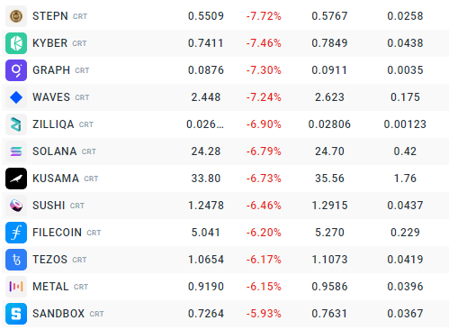 Las caídas prevalecen en el mercado hoy en día, con las altcoins perdiendo más y el propio Bitcoin probando el soporte en $ 23,000. Fuente: xStation5