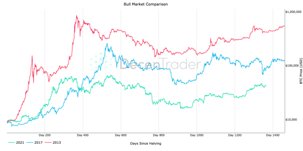Bitcoin sigue siendo volátil antes del "halving". En ciclos anteriores, se alcanzó un nuevo nivel récord de precios entre 220 y 240 días, después de reducirse a la mitad. Esta vez sugeriría un nuevo ATH, aún en el cuarto trimestre de 2024.