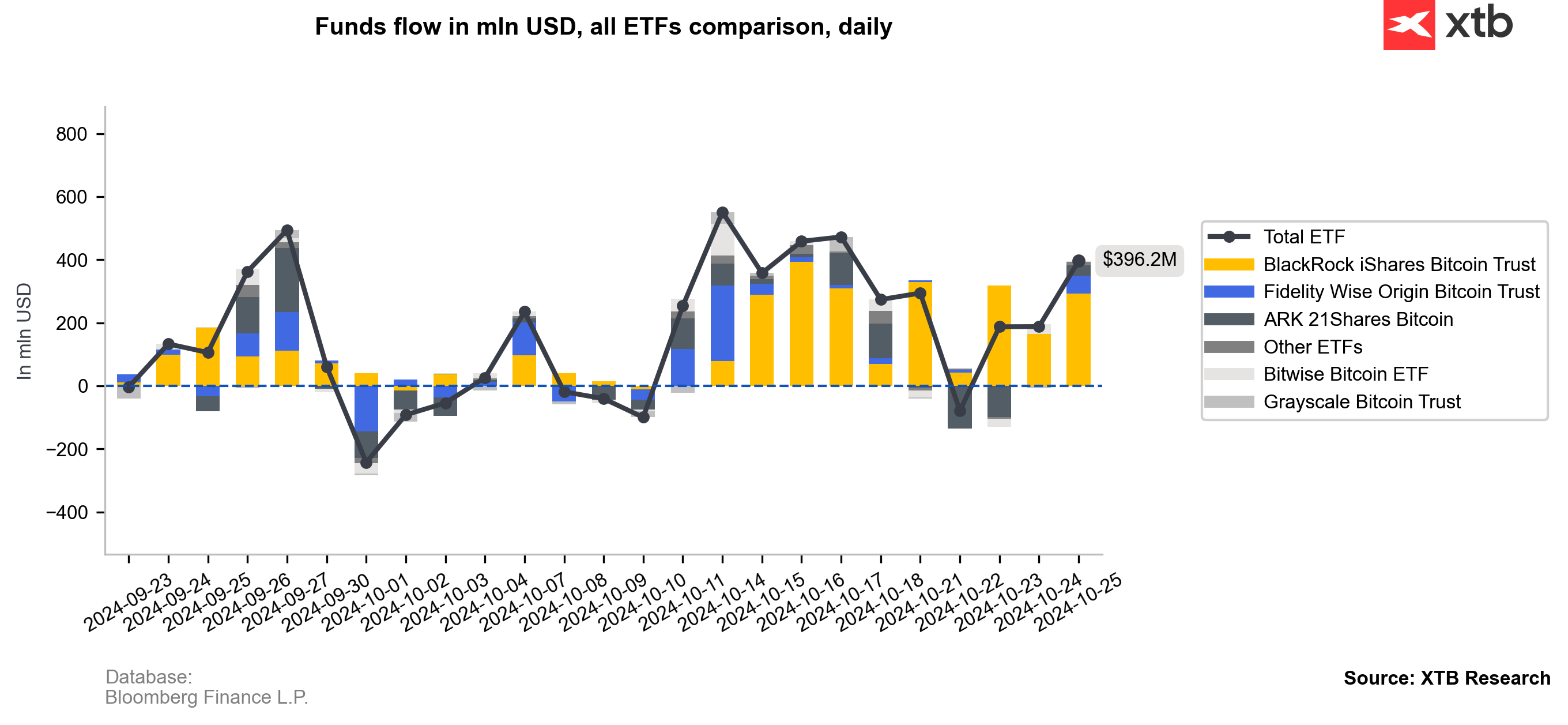 - Los ETF registraron otras entradas netas muy elevadas de 396 millones de dólares el viernes