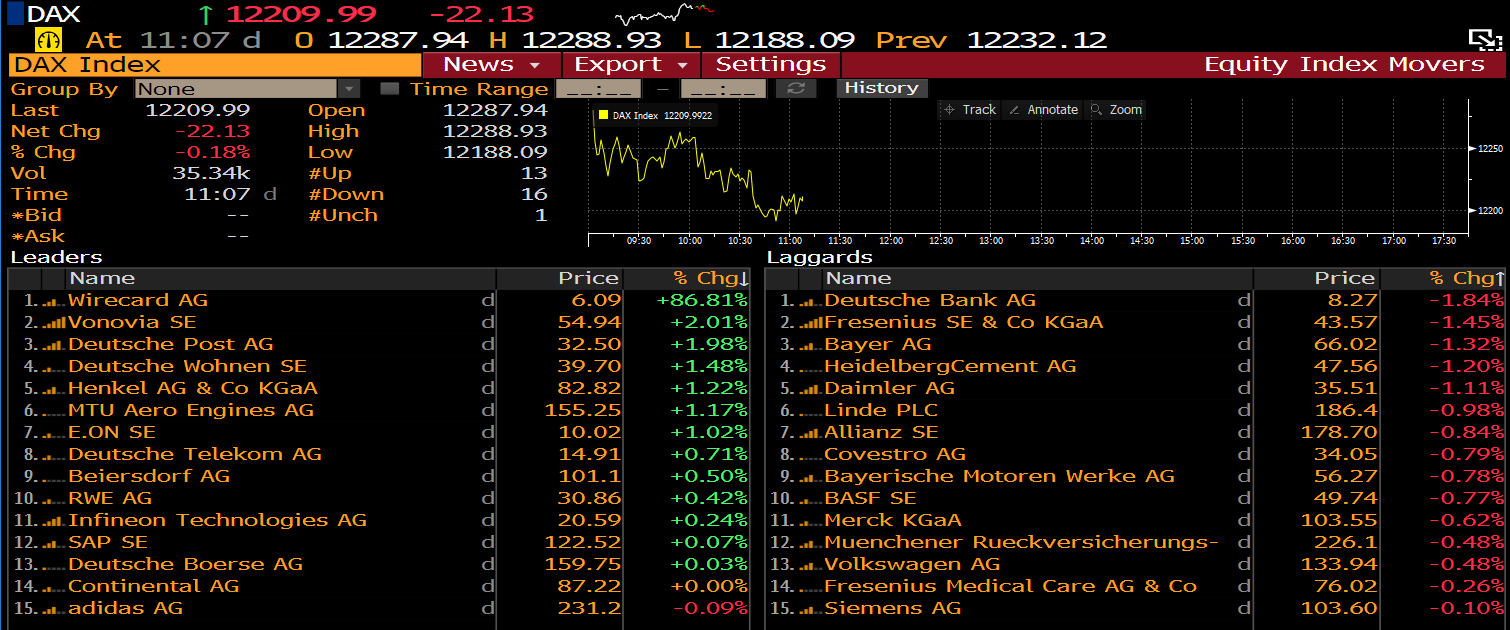 Miembros de DAX a las 10:07 am BST. Fuente: Bloomberg