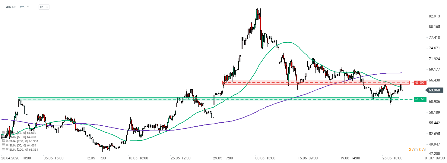 La forma de los planes de reestructuración podría ser un posible gran movimiento de mercado para Airbus (AIR.DE). La acción se cotiza entre un soporte en 61.60€ y una resistencia en 65.90€) y, si la reestructuración es profunda y significativa, podríamos ver un intento de salir del rango al comienzo de una sesión mañana. Fuente: xStation5