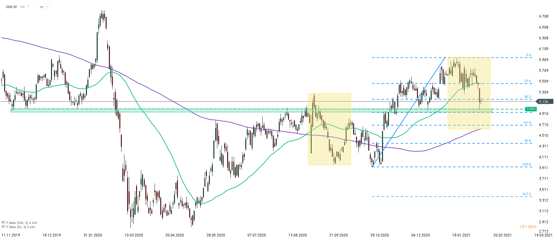 El precio de las acciones de Commerzbank (CBK.DE) cayó ayer cuando el banco anunció su estrategia de reestructuración. La caída se detuvo por la zona de soporte que oscila entre el 50% de retroceso del reciente impulso alcista y la marca de 5,00€. En caso de que la acción se recupere desde aquí, el escenario alcista permanecerá intacto. Por otro lado, una ruptura por debajo de 5,00 € podría allanar el camino para una prueba de la media móvil de 200 sesiones (línea violeta) y el límite inferior de la estrategia Overbalance en alrededor de 4,65 €. Fuente: xStation5