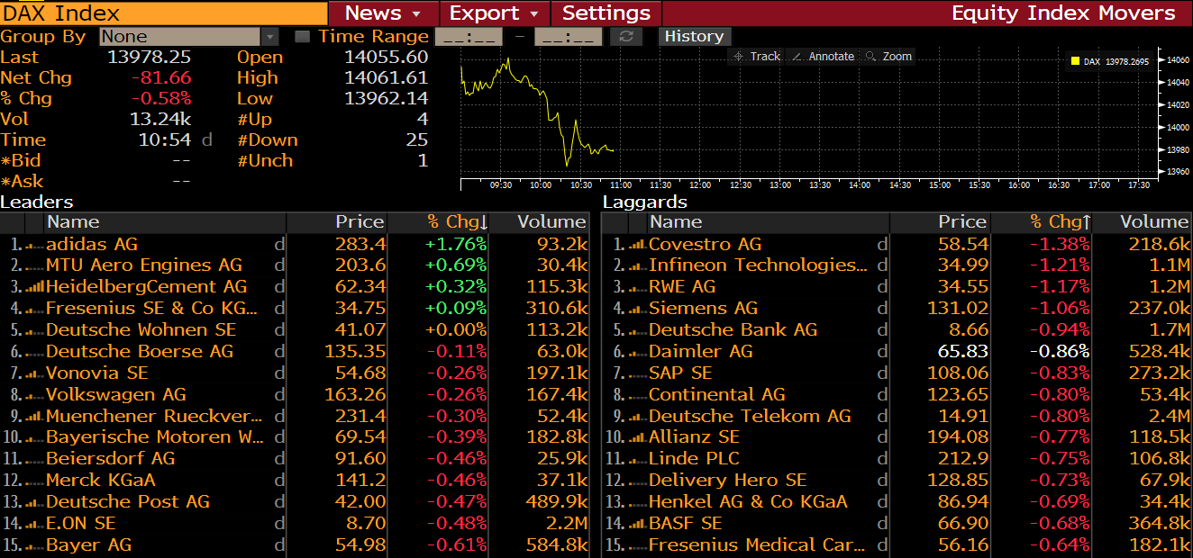 Miembros de DAX a las 10:08 am BST. Fuente: Bloomberg
