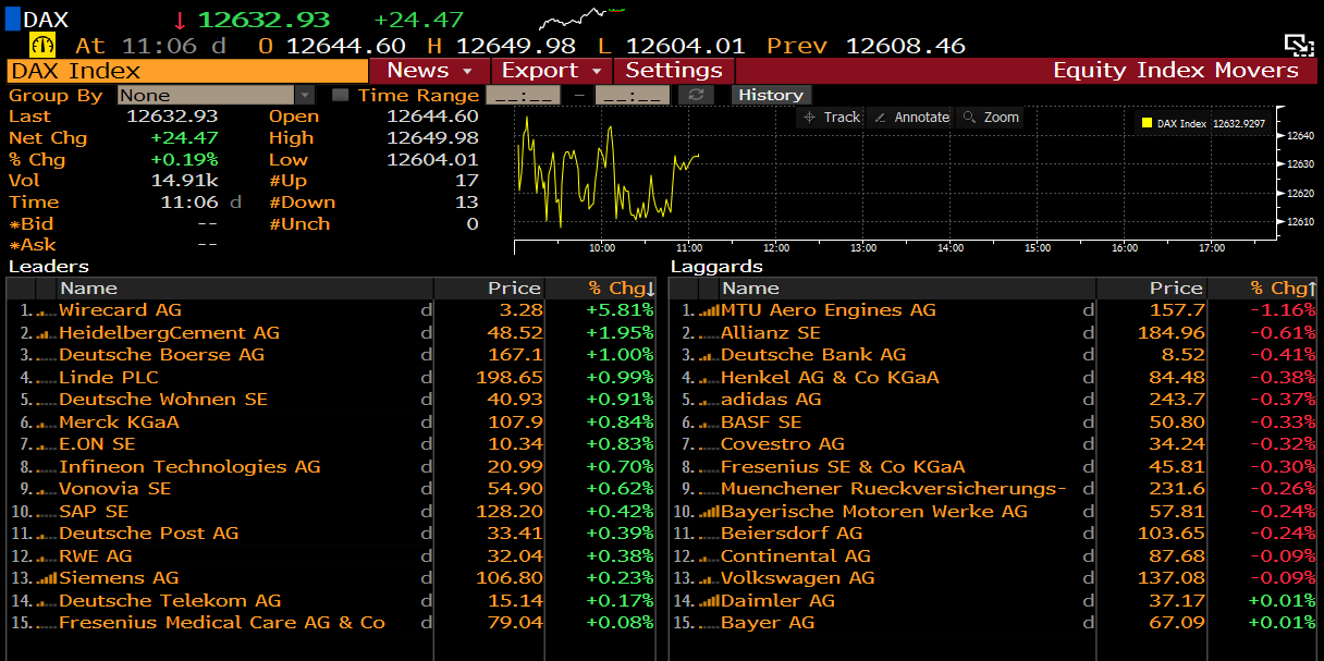 Miembros de DAX a las 10:06 am BST. Fuente: Bloomberg