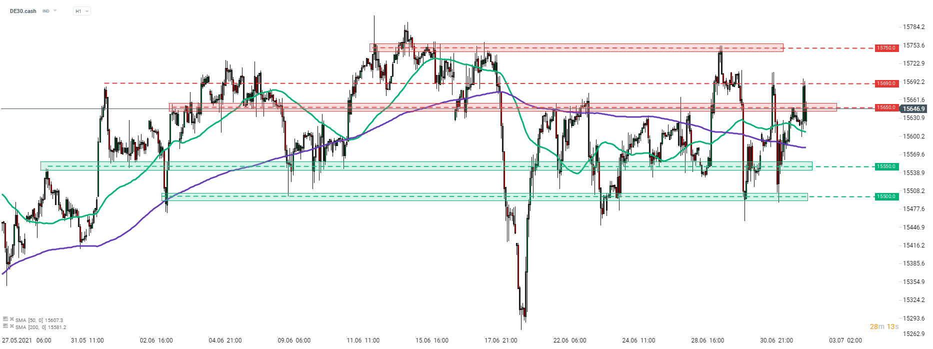 DE30 sigue luchando por realizar un gran movimiento en cualquier dirección. El índice continúa operando dentro de un amplio rango de negociación de alrededor de 200 puntos entre la zona de soporte de 15,500 pts y la resistencia de 15,690 pts. El límite superior del rango estaba al comienzo de las operaciones europeas en efectivo, pero el índice comenzó a retroceder más tarde. Tenga en cuenta que ayer se produjo una situación similar: el índice saltó al inicio de la negociación para probar la resistencia de 15,690 pts antes de caer hacia el límite inferior del rango en 15,500 pts. Dicho esto, los inversores deben ser cautelosos, ya que sin una señal fuerte, el índice puede permanecer dentro del rango. La publicación de las NFP de hoy a la 1:30 pm BST puede proporcionar una volatilidad elevada en los mercados de valores. Tenga en cuenta que las acciones solían saltar sobre los lanzamientos recientes de NFP, independientemente de si era un latido o un error.