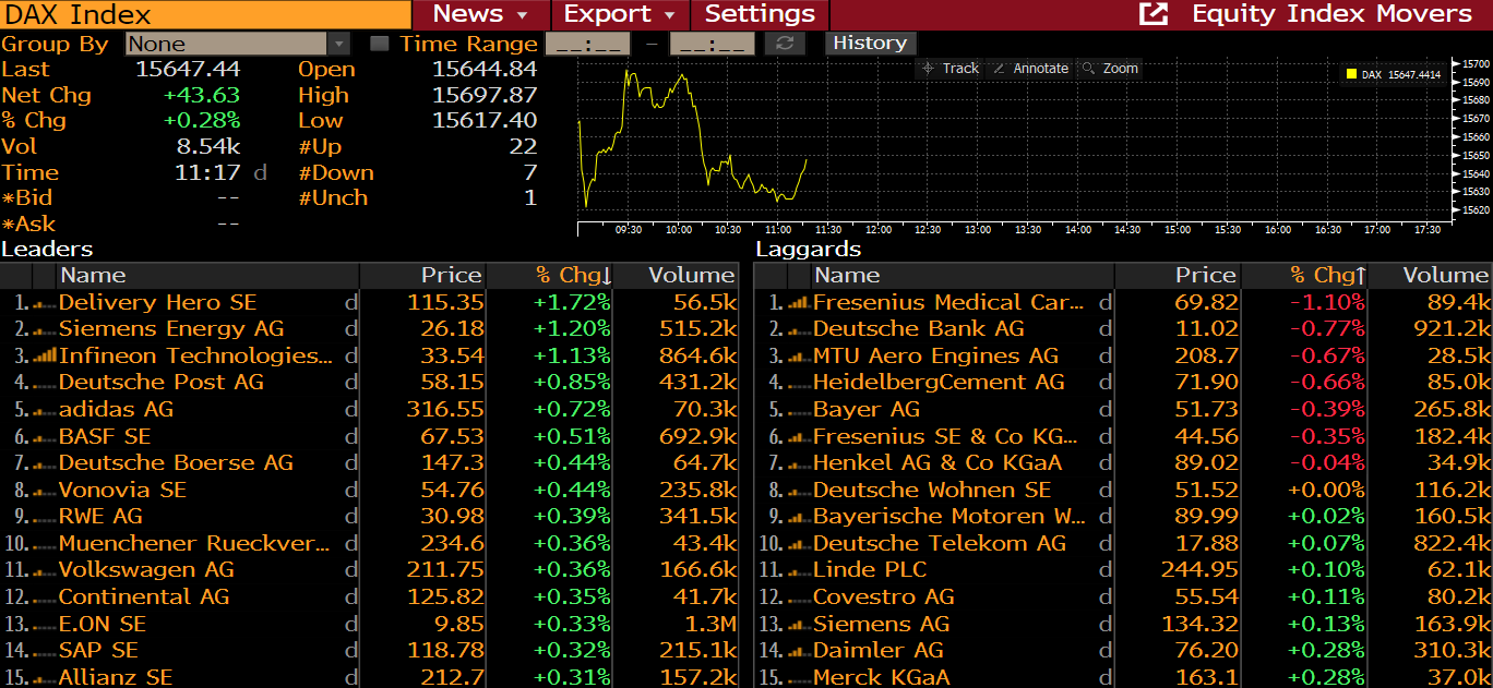 Miembros de DAX a las 10:17 am BST. Fuente: Bloomberg