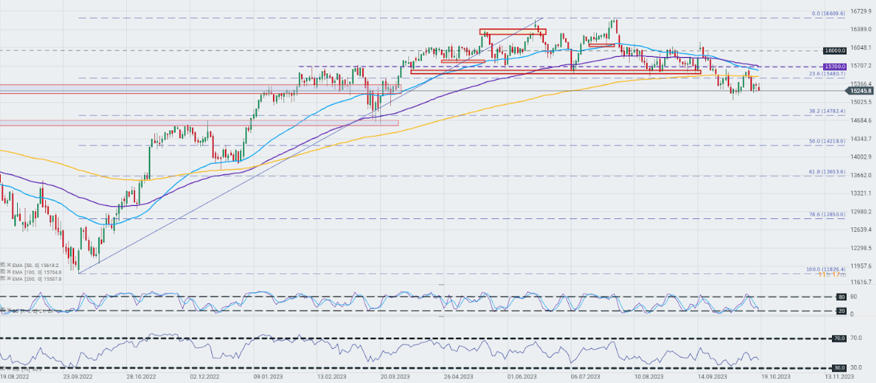 Los futuros basados en el DAX alemán cotizan casi un 0,72 % menos en el día y están por debajo de las zonas de los mínimos locales de esta semana. Fuente: xStation 5