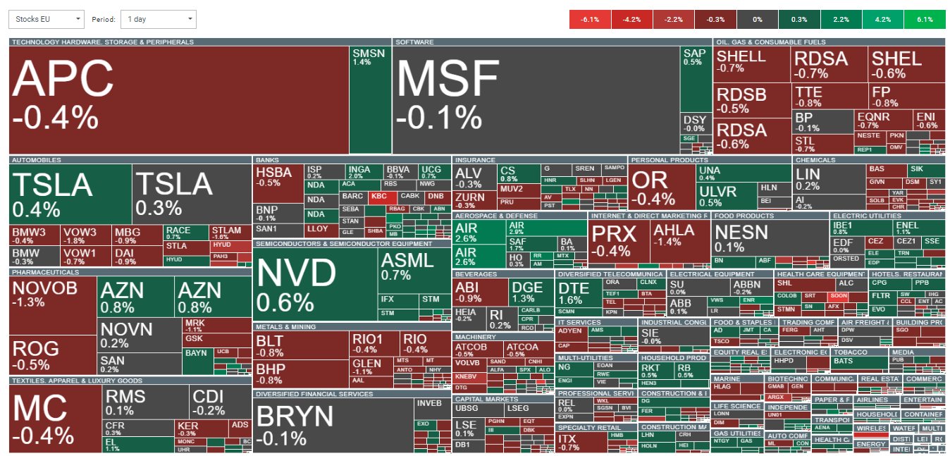 El estado de ánimo en Europa durante la sesión de negociación del martes es relativamente mixto. Fuente: xStation 5.