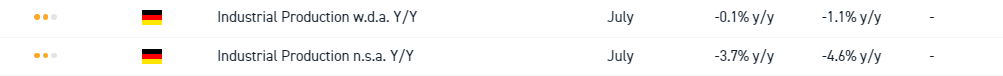 Los datos de producción industrial de hoy en Alemania sorprendieron negativamente.