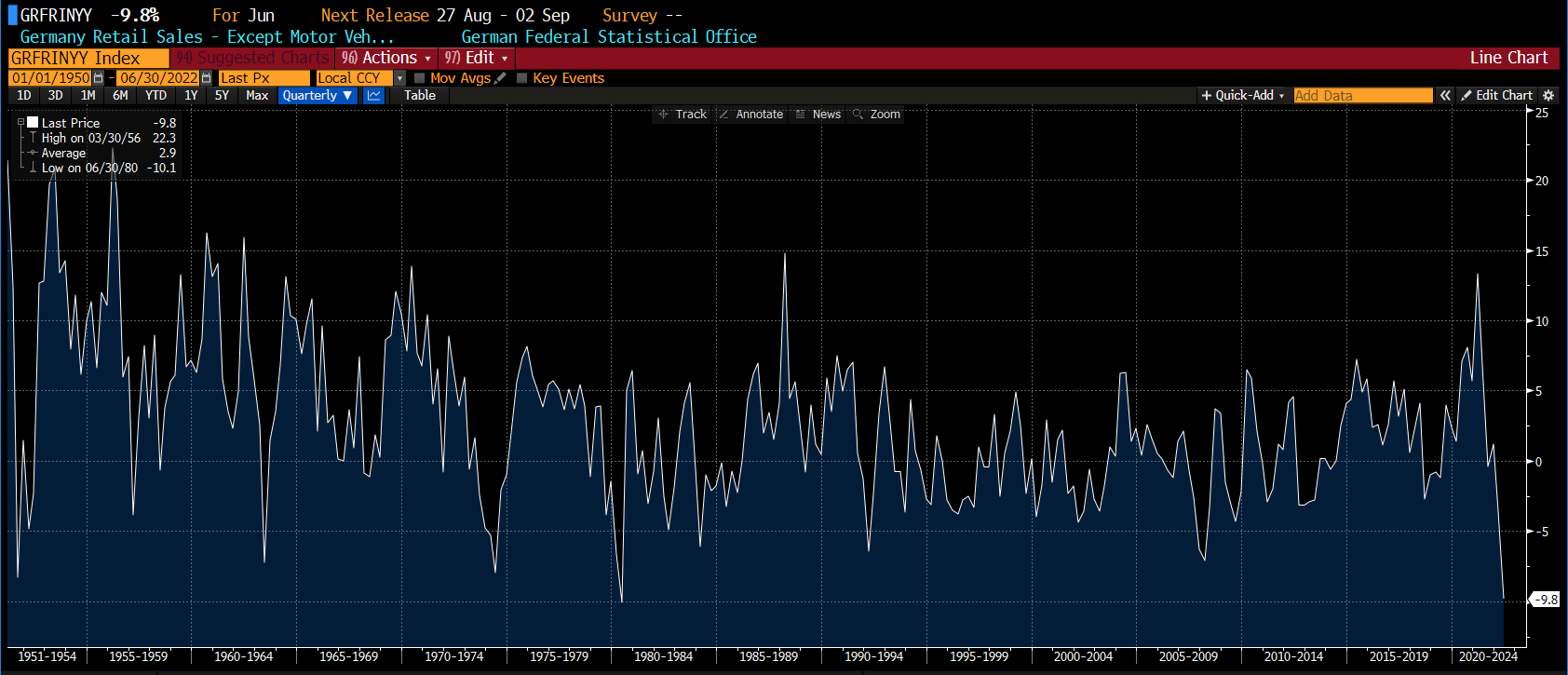 La primera sesión de negociación de esta semana en el mercado europeo se centra en las publicaciones de datos de PMI e ISM para la industria. En Alemania, la cifra de las ventas minoristas captó la atención de los inversores, que resultó ser la más débil desde 1994. Excluyendo la industria automotriz, las ventas minoristas anualizadas cayeron a -8,8 % a/a desde una publicación anterior de 1,1 % a/a. y pronósticos de analistas de -8% a/a. El índice PMI alemán para Alemania superó ligeramente las expectativas de los analistas, llegando a 49,3 frente a un pronóstico de 49,2 y una publicación anterior de 52.