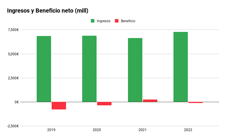 En los últimos 4 años la compañía ha acumulado pérdidas y en 2023 no cambiará la cosa, pese a que en los 6 primeros meses del año (último informe publicado) las pérdidas se redujeron un 40% con respecto al mismo periodo del año anterior.