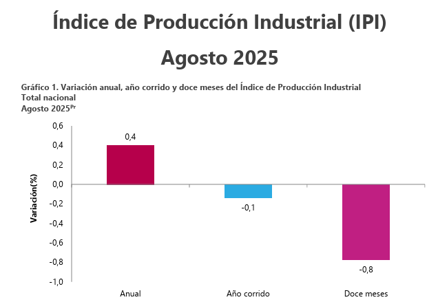 El dato acumulado del año sigue en terreno negativo (-0,1%), y en los últimos doce meses se observa una contracción de 0,8%, lo que evidencia debilidad estructural en la capacidad productiva nacional.
