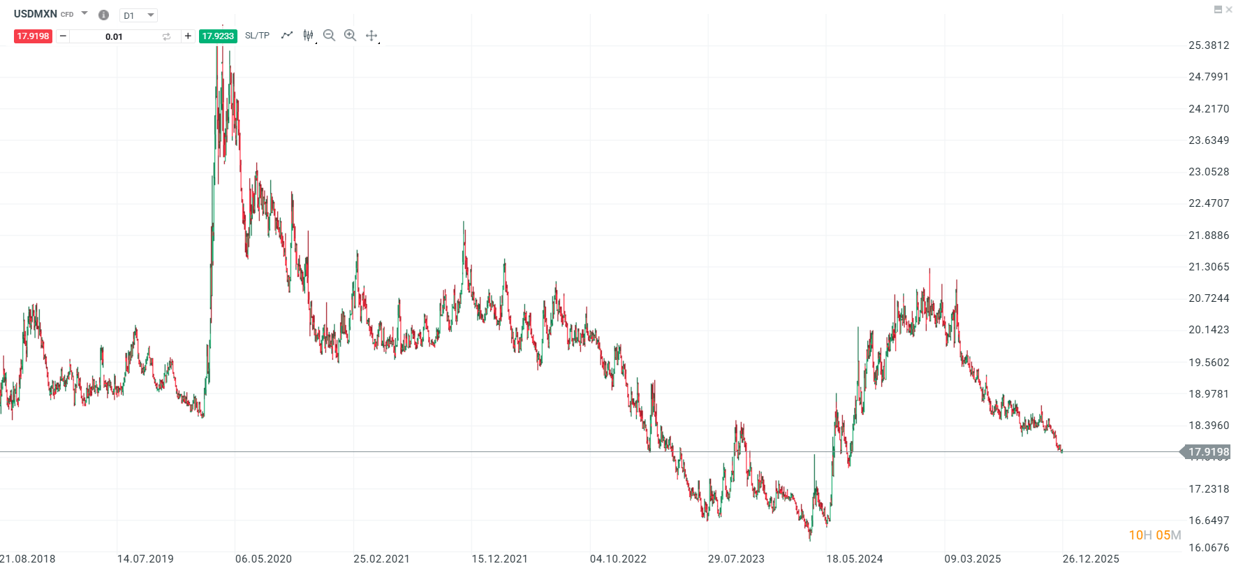 Escenario de rango: con liquidez reducida por el periodo de festividades, lo más probable es un movimiento acotado entre soportes cercanos a 17.90 y resistencias en 18.10–18.40.