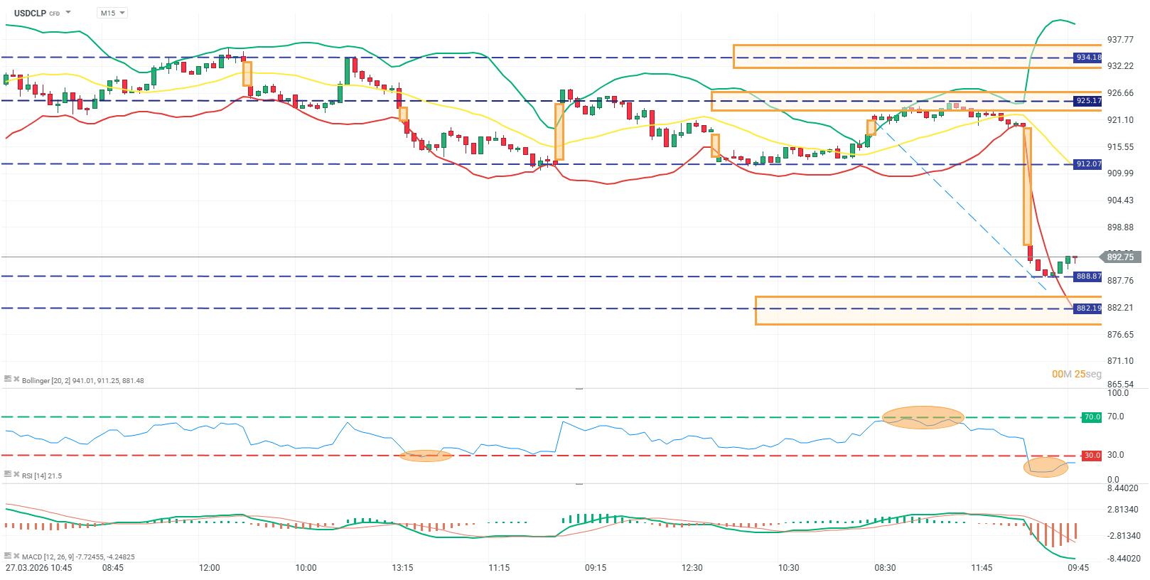 El dólar en Chile inicia la jornada del 8 de abril con una caída significativa, retrocediendo cerca de 3% y ubicándose en torno a los $885–$900 en las primeras operaciones, luego de haber cerrado en $914,47 el día anterior según el Banco Central. Se trata de uno de los movimientos bajistas más relevantes de las últimas semanas, reflejando un cambio abrupto en el posicionamiento global de los inversionistas.