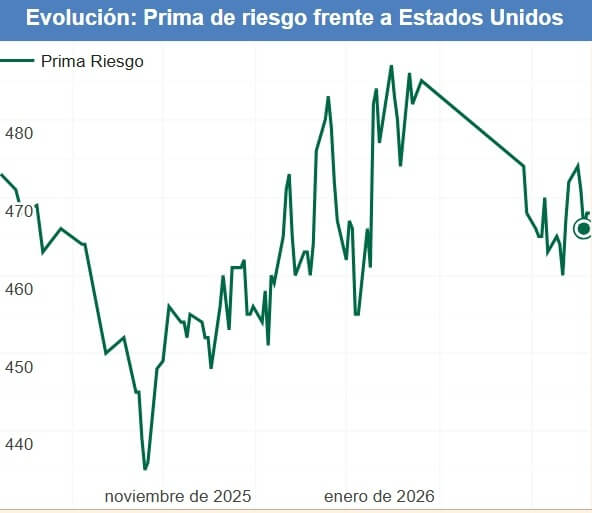- La prima de riesgo de México frente a EE. UU. se mantiene estable en 468 puntos