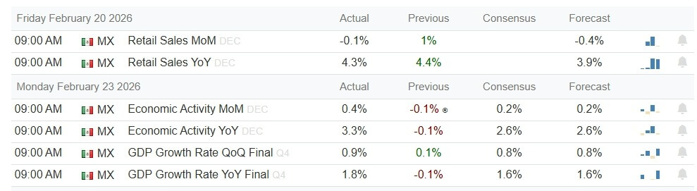 A esta ganancia judicial se suma el avance en seguridad tras la desarticulación del Cártel Jalisco Nueva Generación (CJNG). Esta acción del gobierno mexicano no solo es una reducción del crimen organizado, sino una mejora en la diplomacia coercitiva que neutraliza uno de los principales argumentos de presión de la Casa Blanca de cara a la revisión del T-MEC. Al entregar resultados tangibles en el combate al narcotráfico, México en cierto grado fortalece su posición negociadora y reduce la incertidumbre política que suele castigar la valoración de la divisa.
