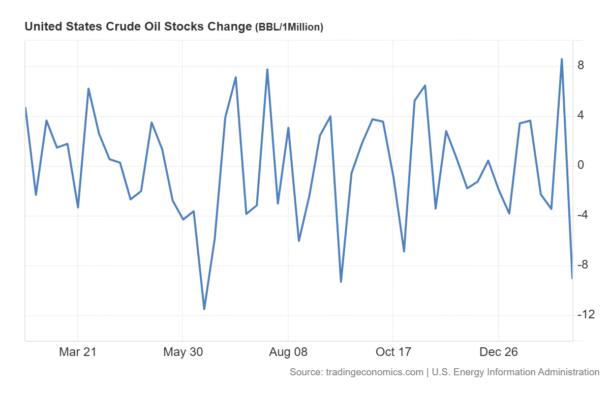 - Caída de reservas: los inventarios de crudo en EE. UU. disminuyeron en 9 millones de barriles debido al aumento de las exportaciones y la utilización de refinerías.