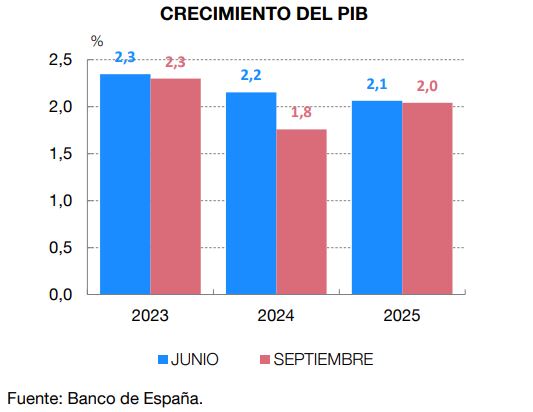 - Previsión de crecimiento 2024: Septiembre: 1,8% frente a 2,2% estimado en Junio
