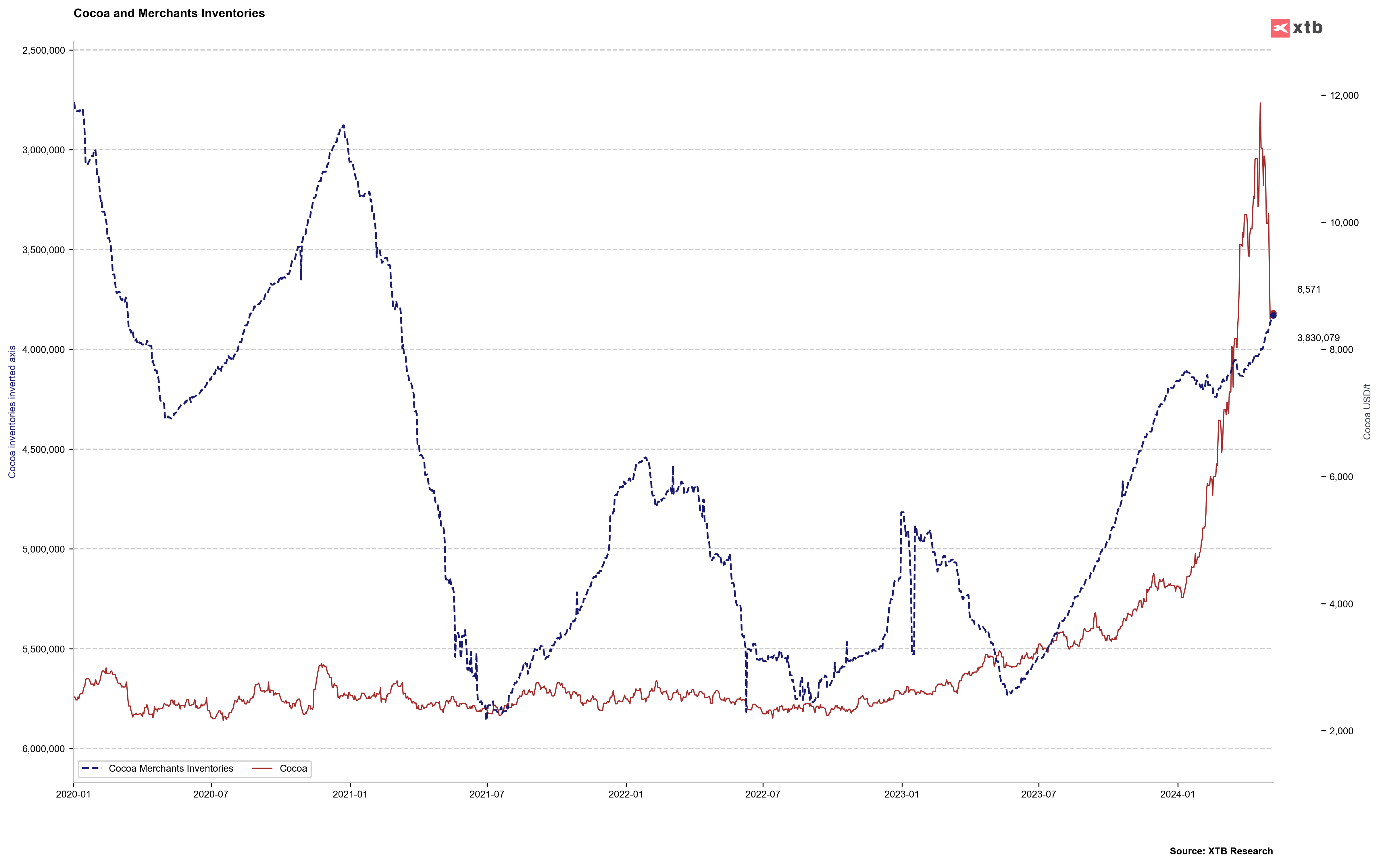 El cacao se está recuperando casi un 14% hoy, lo que probablemente sea el mayor aumento diario de la historia. Por supuesto, el mercado cierra a las 6:30 pm GMT, por lo que parte del movimiento puede reducirse. Anteriormente, aumentos tan fuertes se produjeron en 1990 y 1993. El precio del cacao se recupera hoy desde alrededor de 7.500 dólares hasta el nivel de 8.500 dólares por tonelada y se acerca a la resistencia impuesta por el retroceso de 38,2 de toda la onda alcista de este año. . Estos fuertes movimientos del mercado están asociados con una liquidez muy baja. La mayoría de los grandes fondos han “huido” del mercado por temor a la imposibilidad de ejecutar los contratos de suministro.