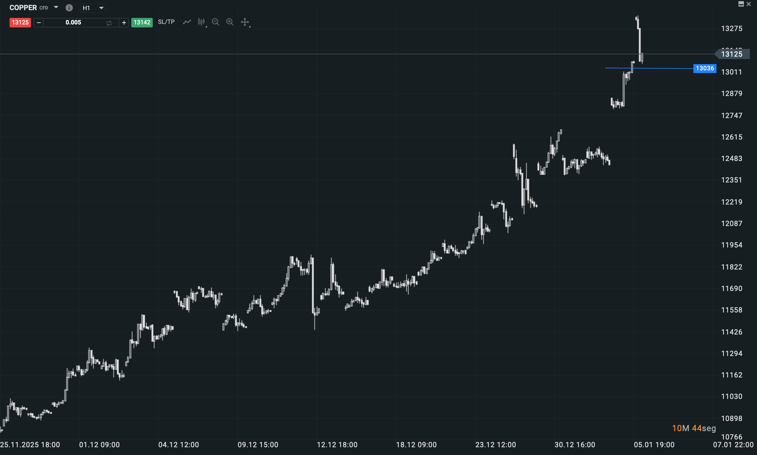 El cobre ha entrado en una fase que no se ve todos los días. En apenas unos meses ha pasado de moverse con cierta parsimonia a romper máximos históricos por encima de los 13.000 dólares por tonelada, acelerando un rally que se ha intensificado desde octubre y que ha obligado a muchos traders a reajustar el mapa mental del mercado. Cuando un activo llega a estas zonas, el precio deja de ser solo un reflejo de oferta y demanda inmediata y pasa a convertirse en una mezcla de narrativa, miedo a quedarse fuera y ajustes forzados de posicionamiento.