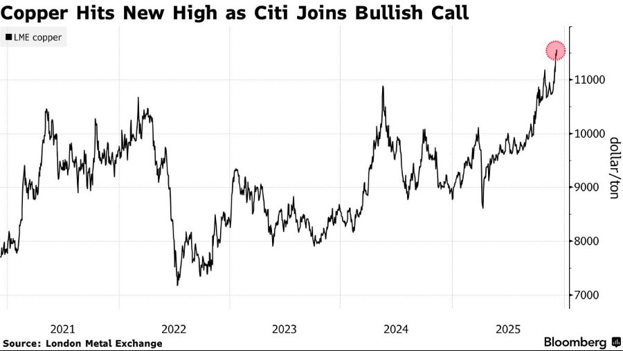 Rally histórico del cobre: nuevos máximos impulsados por el optimismo de Citi