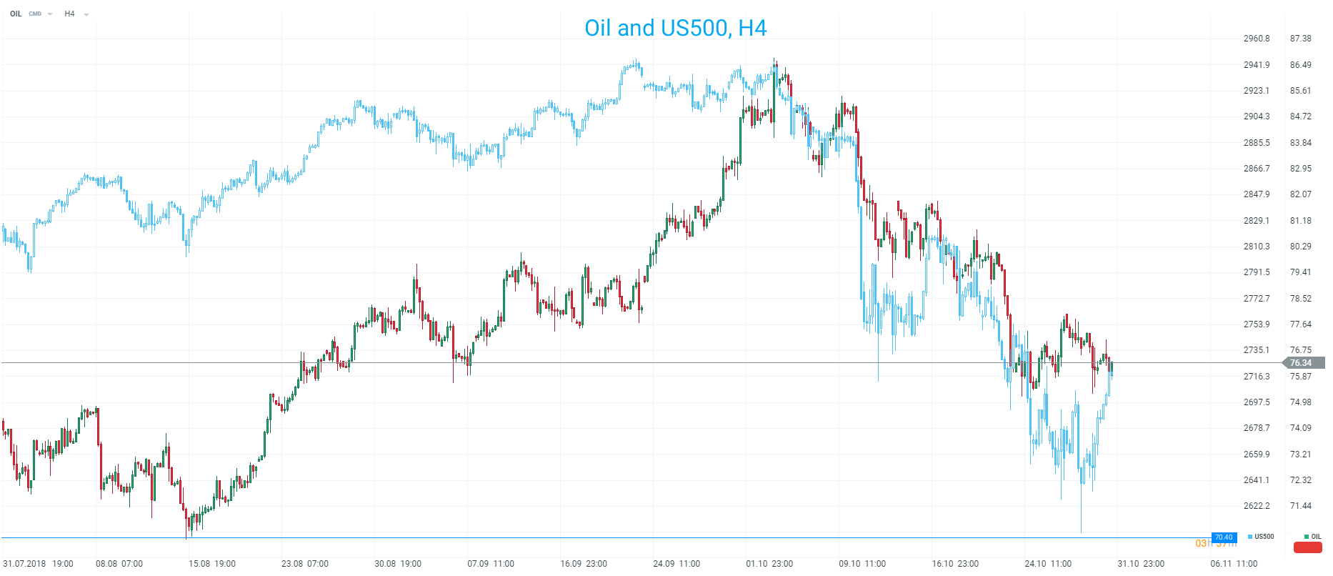 Una observación interesante con el precio del crudo Brent es cuán estrechamente se ha correlacionado con las acciones de EE. UU. El mes pasado, el precio del petróleo y S&P 500 se han movido a la baja. Esto podría significar que una recuperación en las existencias es un buen augurio para el petróleo en caso de que ocurra. Fuente: xStation