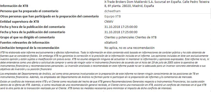 "Este informe se proporciona sólo con fines de información general y con fines educativos. Cualquier opinión, análisis, precio u otro contenido no constituyen asesoramiento de inversión o recomendación en entendimiento de la ley de Belice. El rendimiento en el pasado no indica necesariamente los resultados futuros, y cualquier persona que actúe sobre esta información lo hace bajo su propio riesgo. XTB no aceptará responsabilidad por ninguna pérdida o daño, incluida, sin limitación, cualquier pérdida de beneficio, que pueda surgir directa o indirectamente del uso o la confianza de dicha información. Los contratos por diferencias (""CFDs"") son productos con apalancamiento y acarrean un alto nivel de riesgo. Asegúrese de comprender los riesgos asociados. "