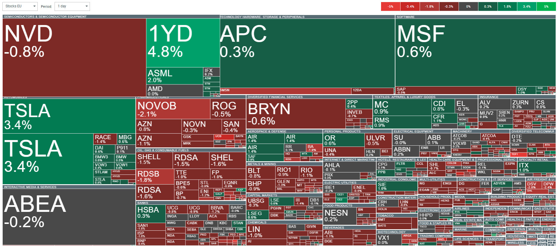 - Las acciones de Thyssenkrupp (TKA.DE) cayeron un 2% después de que su filial Nucera informara de una pérdida de EBIT de 14 millones de euros para el ejercicio 2023/24, en comparación con un beneficio de 25 millones de euros en el año anterior. La filial de hidrógeno prevé un EBIT para el ejercicio 2024/25 de entre -30 millones de euros y +5 millones de euros, a pesar de que la cartera de pedidos supera los 1.000 millones de euros. Las ventas se prevén en 850-950 millones de euros, tras un aumento del 32% hasta los 862 millones de euros. La empresa ha ampliado su plantilla de 675 a 1.012 empleados.