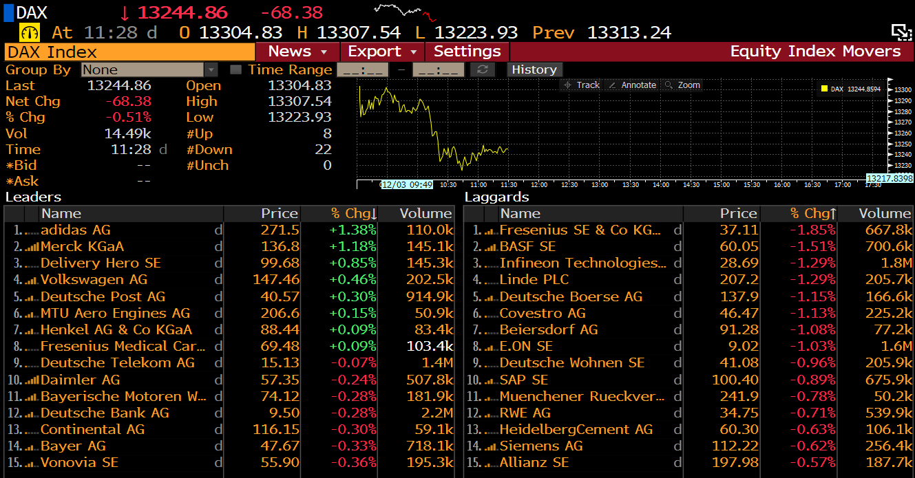 Miembros de DAX a las 10:28 am GMT. Fuente: Bloomberg