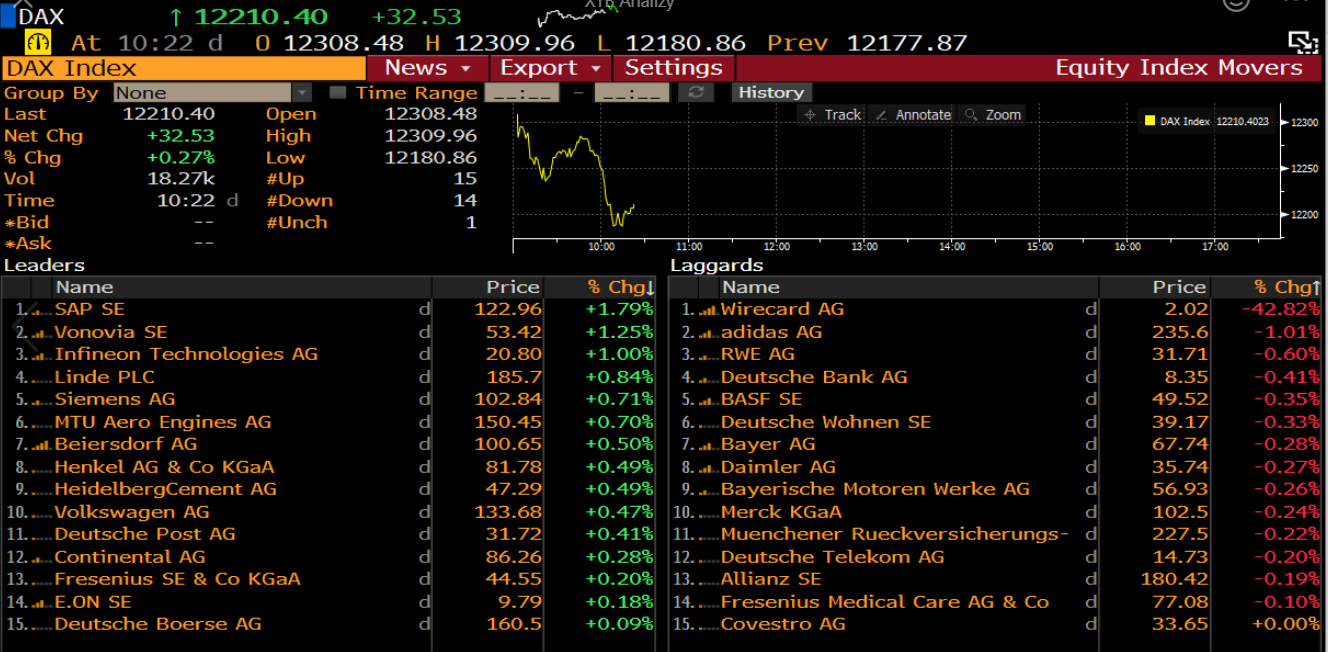 Miembros de DAX a las 09:37 am BST. Fuente: Bloomberg
