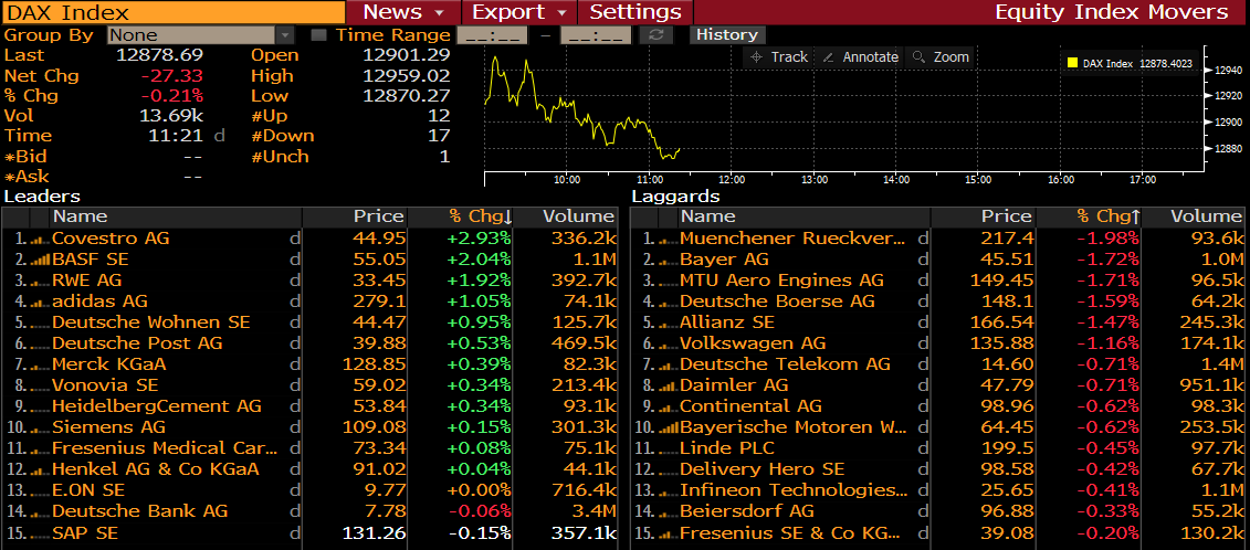 Miembros de DAX a las 10:21 am BST. Fuente: Bloomberg