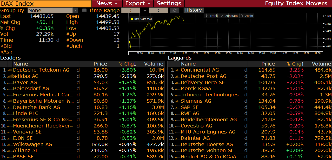 Miembros de DAX a las 10:30 am GMT. Fuente: Bloomberg