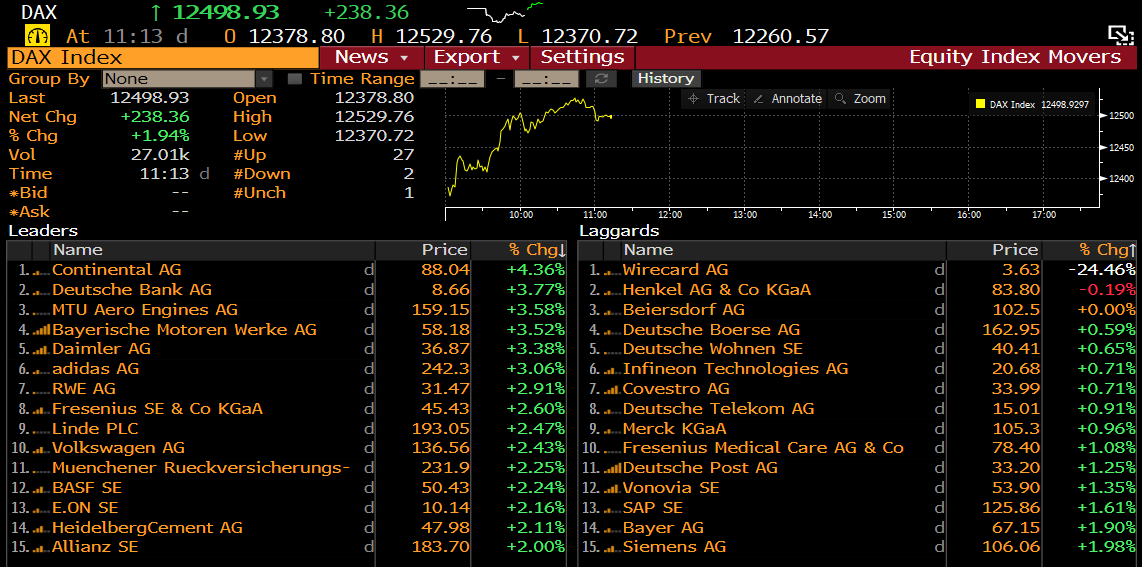 Miembros de DAX a las 10:13 a.m. BST. Fuente: Bloomberg