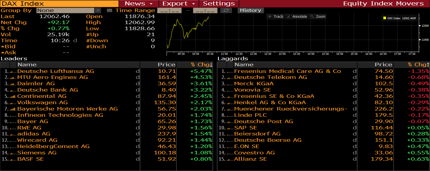 Las empresas del DAX se están recuperando lentamente el viernes. Fuente: Bloomberg