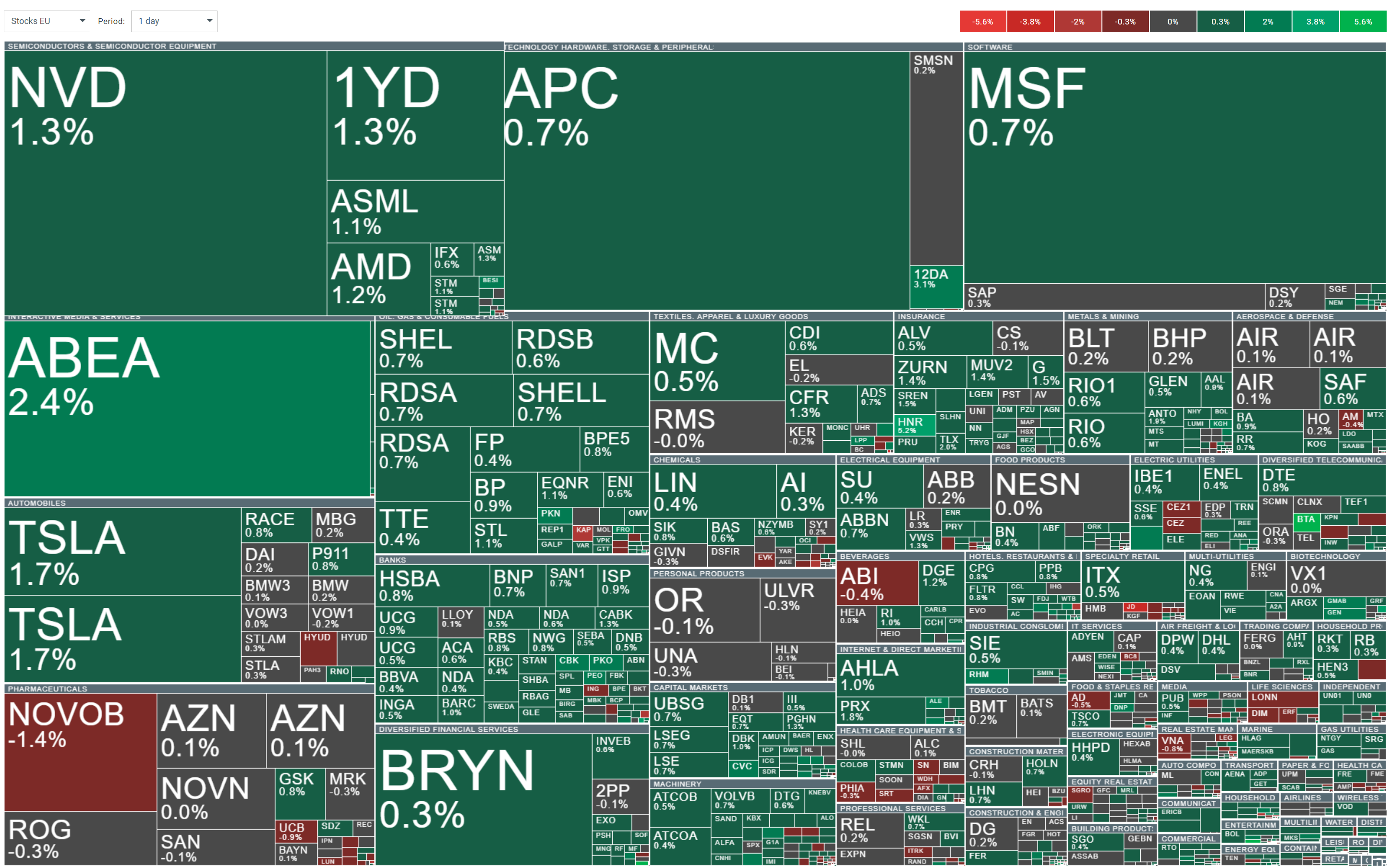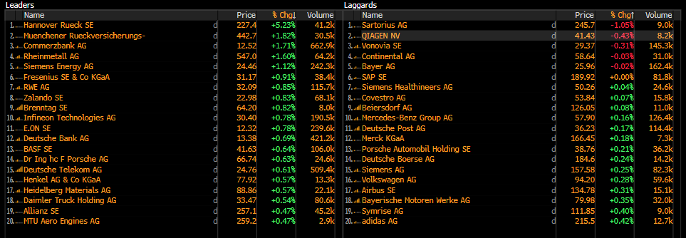 Los índices siguen con las subidas del viernes y se acercan a importantes niveles de resistencia. El CAC40 francés se mantiene cerca del precio del viernes. El DAX alemán sube un 0,1%, acercándose a un importante nivel de retroceso de Fibonacci, y el IBEX35 español avanza un 0,2%. Los índices con mejor comportamiento son el MIB italiano, que avanza un 0,6%, y el índice polaco, que compensa la caída del viernes con una subida de más del 2%. El Hypoport sube más del 8% tras sus buenos resultados, y el componente del DAX, el Hannover Rueck, sube más del 5%, también debido a unos resultados mejores de lo esperado.