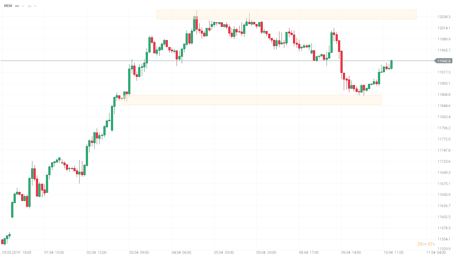 El BCE mantuvo los tipos de interés en un nivel sin cambios que es del -0,4% para el tipo de depósito y del 0% para el tipo de refinanciación. Al mismo tiempo, el Banco mantuvo su opinión de que los tipos no aumentarán este año. El comienzo de la conferencia posterior a la reunión trae un pequeño rally en DE30, incluso cuando Draghi apunta a un crecimiento más lento y persistencia de incertidumbres.