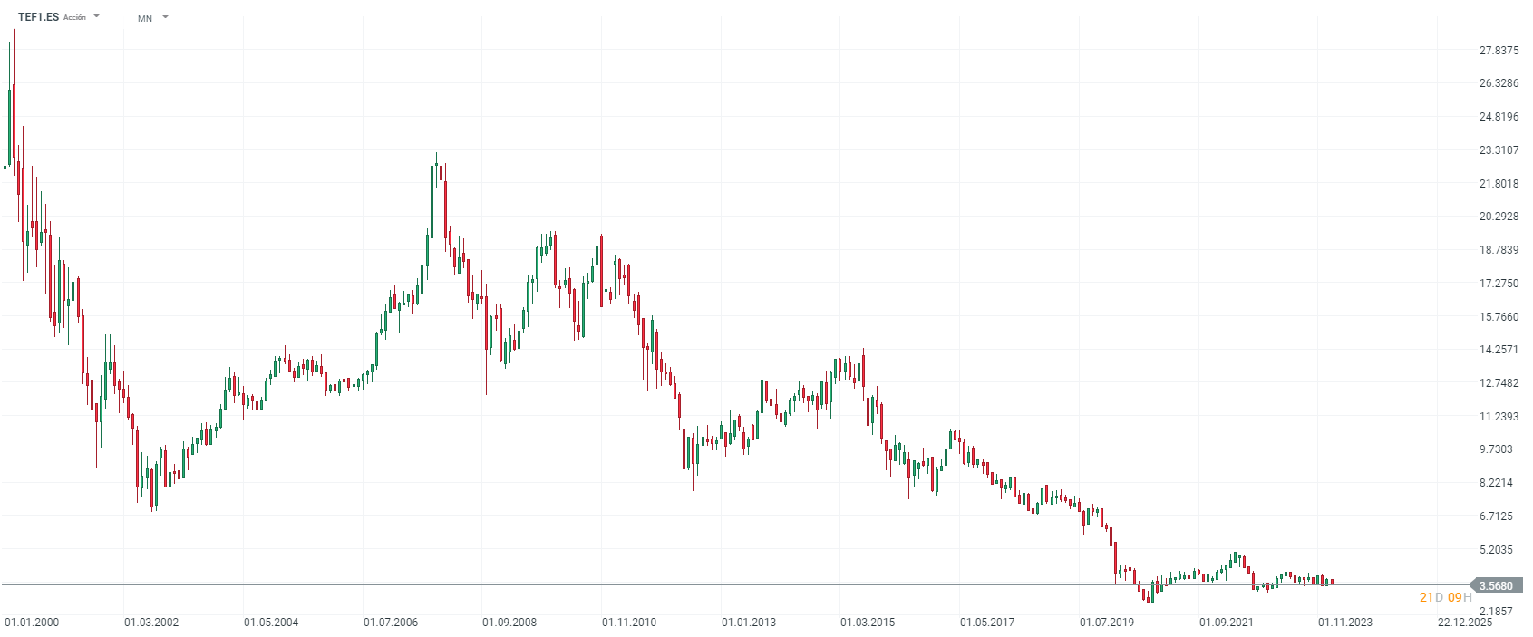 Las acciones de Telefónica caen un 1,6% en lo que va de año.