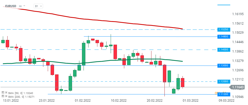 EURUSD tuvo una reacción relativamente pequeña a la publicación de datos de inflación de hoy. El par de divisas más popular continuó cotizando alrededor del nivel 1.1165. Fuente: xStation5