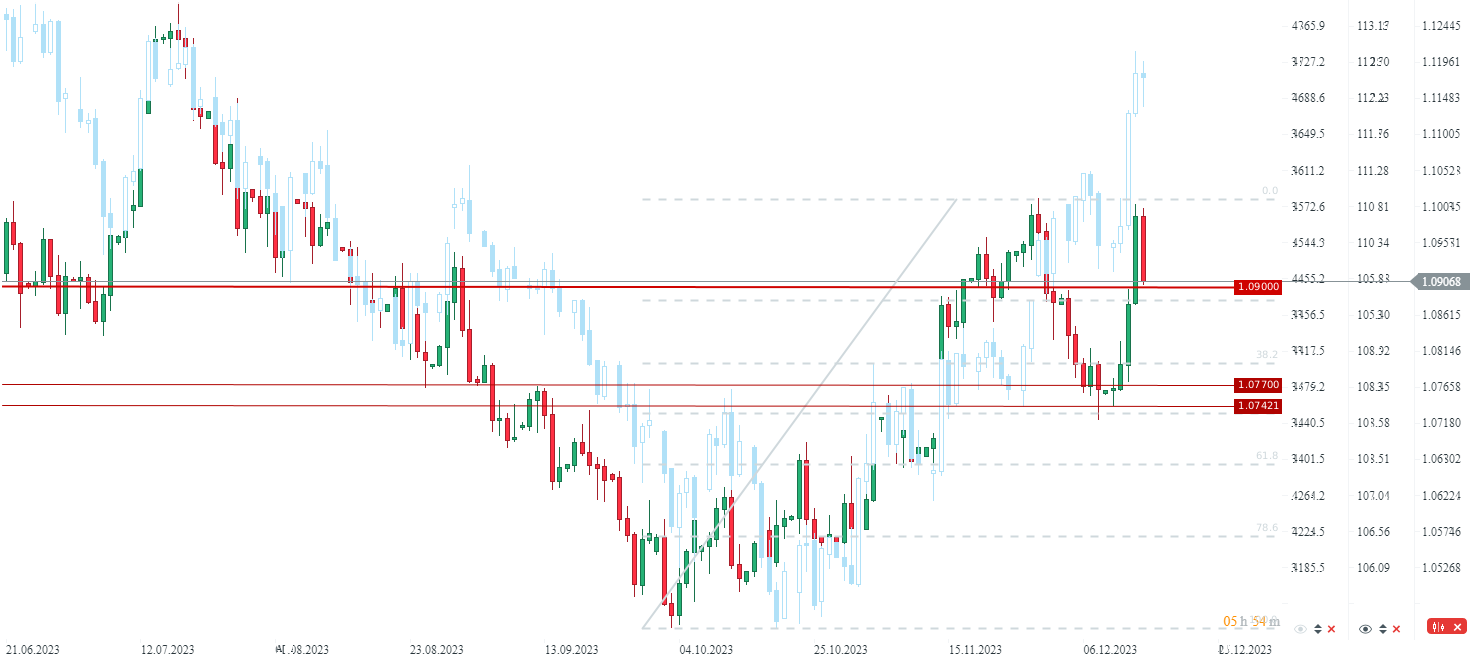 El FOMC ha golpeado duramente al dólar estadounidense a principios de esta semana. El nuevo gráfico de puntos que sugiere tres recortes de tipos de 25 puntos básicos en 2024 provocó un repunte en los mercados de valores estadounidenses y provocó que el dólar cediera terreno y el eurodolar subiera. El movimiento alcista del eurodolar se extendió ayer tras una reunión bastante agresiva del BCE. Como resultado, el principal par de divisas saltó alrededor de un 2% en dos días, desde menos de 1,08 el miércoles hasta más de 1,10 ayer. Sin embargo, hoy se produjo una rápida reversión y el eurodolar ahora está alcanzando la marca de 1,09. ¿Qué está impulsando el movimiento a la baja hoy?