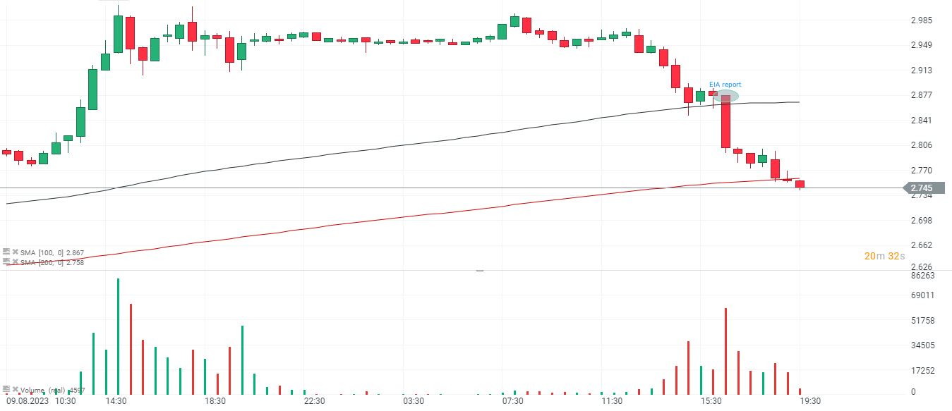 El cambio en el gas estadounidense (en miles de millones de pies cúbicos) según la EIA superó las expectativas, lo que ejerció presión sobre los contratos de futuros del Gas Natural hoy.