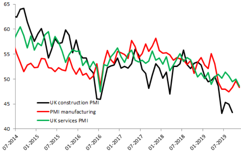 Ambas lecturas son una clara decepción y, al estar firmemente por debajo de la marca de 50, indican que ambas están en territorio de contracción. Mirando debajo en profundidad podemos ver más signos de preocupación, con caídas en la producción y los nuevos pedidos, y aunque esto podría explicarse debido a la mayor incertidumbre política antes de las elecciones del próximo mes, no cabe duda de que la economía del Reino Unido se encuentra en un punto muerto.