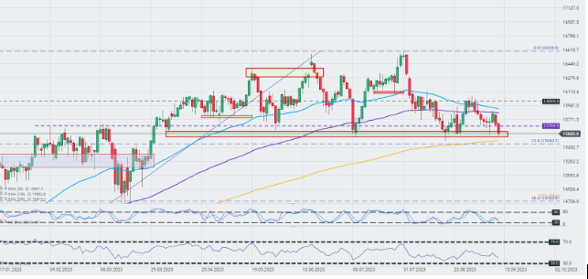 El índice alemán DAX pierden hoy casi un 0,7% y caen por debajo de las zonas de soporte técnicamente importantes establecidas por la zona de los 15.700 puntos. Además, cotiza actualmente en una zona de mínimos que ya se ha probado cinco veces este año. Fuente: xStation 5