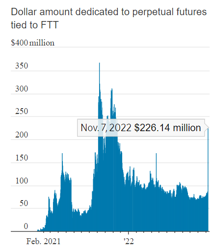El volumen de negociación denominado en dólares de los contratos de futuros asociados con el token de la plataforma FTX ya aumentó a $ 226 millones el domingo. Fuente: Coinglass