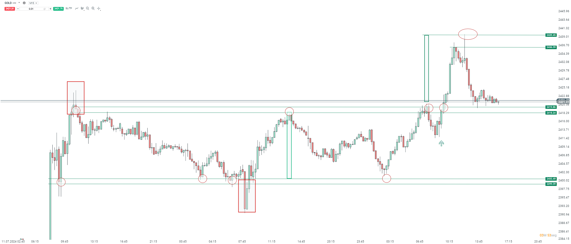 El precio del oro puede ir nuevamente a buscar el maximo local que alcanzo durante el dia durante la proxima jornada, eso si es capaz de mantenerse por sobre el nivel clave de resistencia en los 2436.Fuente: xStation 5