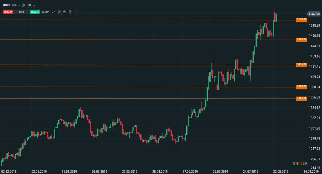 El escenario de incertidumbre que nos entrega la guerra comercial lleva a los traders a buscar refugio en el oro, por lo mismo hemos podido apreciar un alza constante en este instrumento desde fines del mes de mayo, inclusive ha roto resistencias que venían siendo respetadas desde el año 2013.
