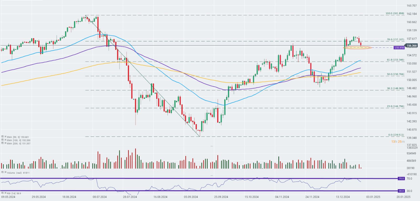 El par USD/JPY siguió un impulso ligeramente alcista que lo llevó por encima de la zona de 158 y dejó así un espacio cercano al 2,5% respecto a los máximos locales registrados en julio.